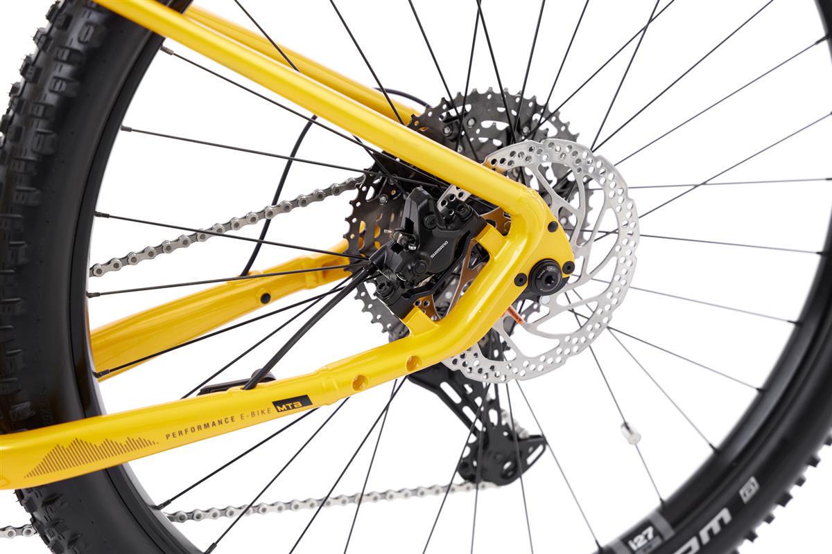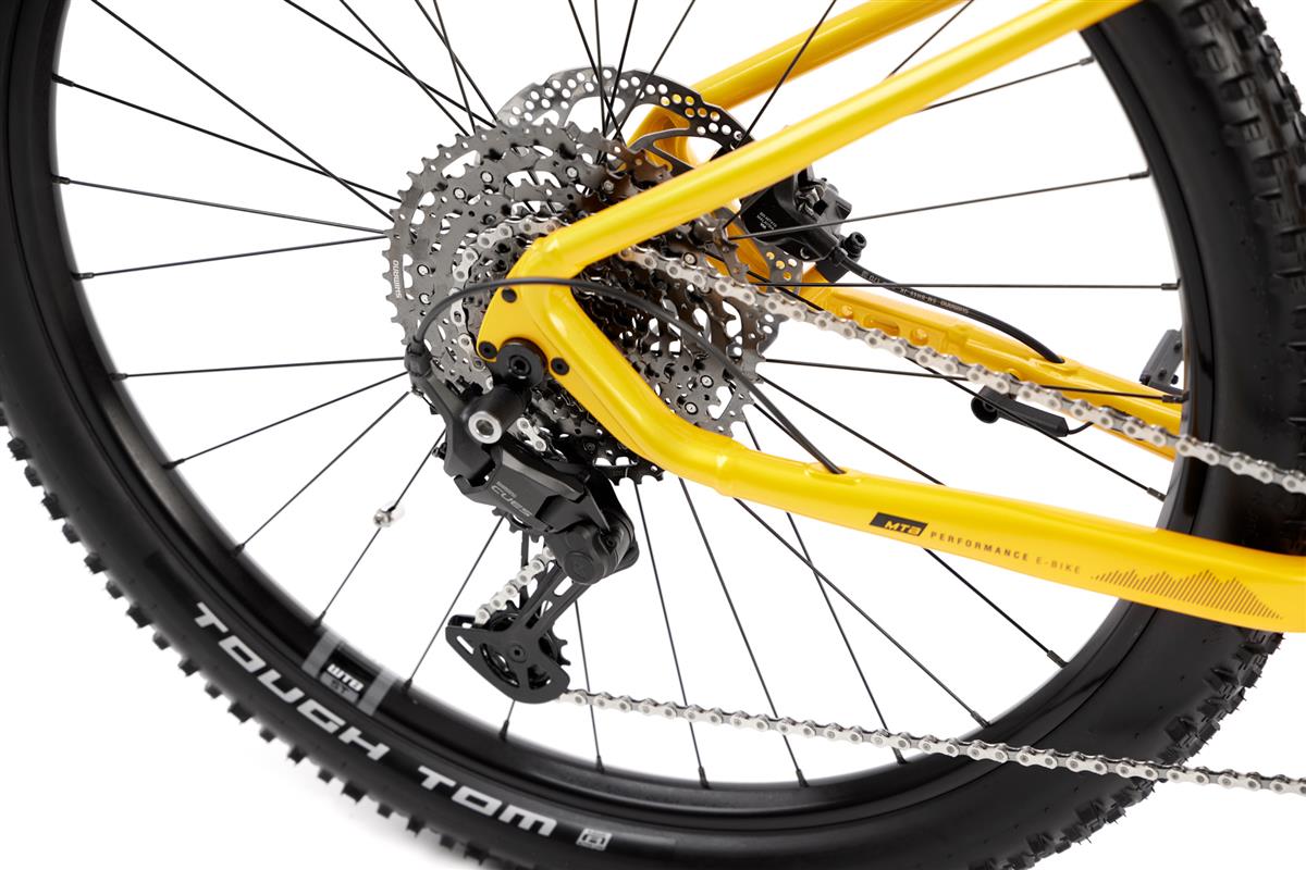 Pozostałe komponenty doskonale uzupełniają specyfikację. Amortyzator powietrzny RockShox Silver TK to 120 mm skoku dla lepszej amortyzacji roweru E-MTB, a o bezpieczeństwo dbają mocne hamulce Shimano MT4100. Za przełożenia odpowiada 11 rzędowy napęd Shimano Cues. Ta nowa grupa napędu od japońskiego producenta charakteryzuje się przede wszystkim długą żywotnością i szybką zmianą przełożeń. Łańcuch, kaseta i zębatki są specjalnie dobrane pod rower ze wspomaganiem elektrycznym.